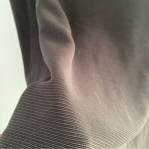 Mini : knee length. Black color. Elastic waist. Stretchy. Ribbed knit. Made believe zipper pockets.