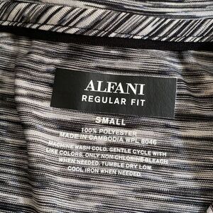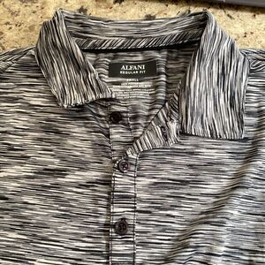 Regular fit Small Collar 3 front buttons Black/white/gray Heathered Hundred percent polyester Machine was gentle
