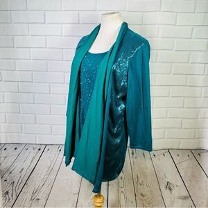 Alfani Teal Sequin Two Piece Sweater Set - Size 1X. Excellent condition no flaws or missing sequins. Includes Cardigan & Tank.