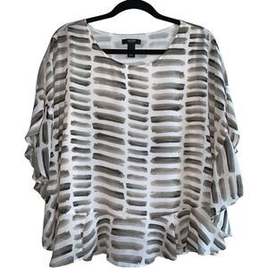 Alfani Watercolor Stone/White Ruffled Poncho Peplum Blouse Top fully lined