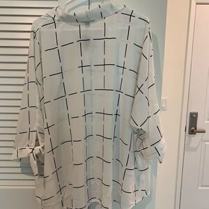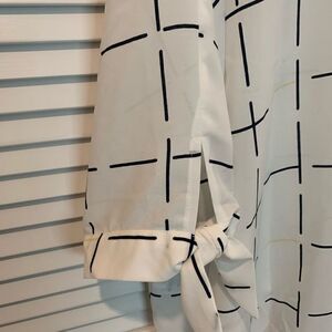 Alfani NEW WITH TAGS Printed Tie Sleeve Roll Front Blouse Alfani takes you from the workweek to the weekend in this printed top, finished with a chic tie at the front hem. Spread collar; button closure at front 3/4-sleeves with ties Polyester Machine washable Imported