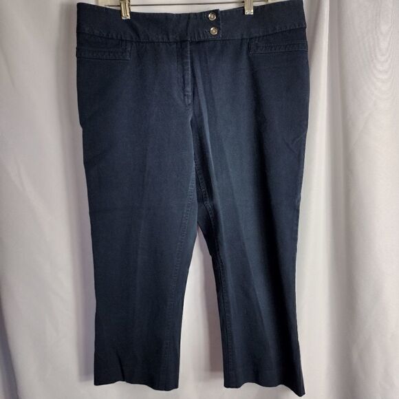 navy blue, cotton rayon spandex blend capris. waist 18.5" length 22"