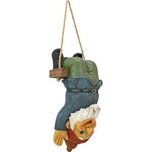 Whats it all about, Alfie? With his pointy cap and scruffy gnome beard, our gnome statue hangs upside down from a faux-wooden swing with ruddy cheeks beaming a ready smile. Whimsically sculpted from his round nose to his shiny belt buckle, our Design Toscano exclusive gnome sculpture is cast in quality designer resin before he's hand-painted one piece at a time gnome artisans and suspended from a sturdy rope. 5½"Wx4½"Dx11"H. 2 lbs.