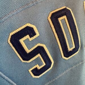 The product is a Nike officially licensed Alfonso Soriano #12 Chicago Cubs Cooperstown Collection jersey in unisex size small. This baseball jersey features the iconic blue color of the Chicago Cubs team and is perfect for any fan looking to show support for the Major League Baseball player. With its high-quality materials and design, this jersey is a must-have for any baseball enthusiast.