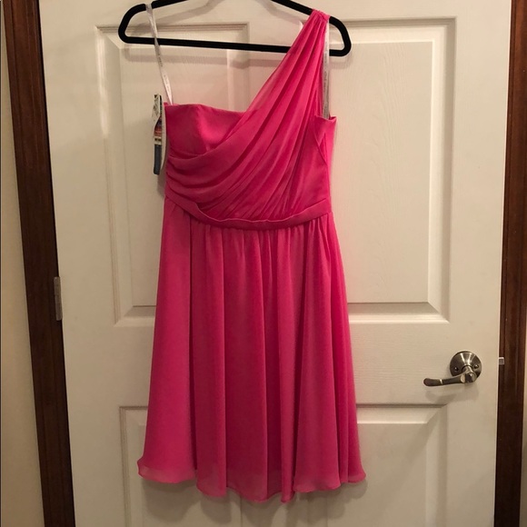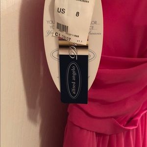 NWT Alfred Angelo prom/cocktail dress. One shoulder, fuscia, gathering across chest and shoulder. Hidden zipper back closure.
