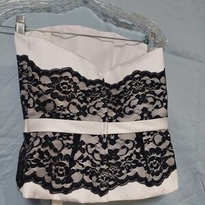 Stylish top with black lace overlay. Elegant design for special occasions.
