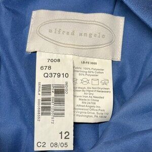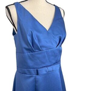 Alfred Angelo Dress Formal Satin Indigo Blue Bow Waist V Neck Sleeveless Size 12