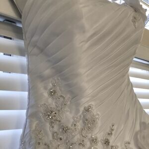 Charming white gown by Alfred Angelo. Ideal for weddings or formal events.
