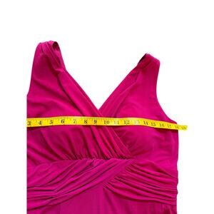 Turn heads in this gorgeous Alfred Angelo fuchsia cocktail dress featuring a flattering surplice neckline and gathered waist detail for a slimming silhouette. The elegant design includes a hidden back zip closure for a smooth finish, and it’s fully lined for comfort and coverage. Crafted from a quality stretch fabric blend (95% polyester, 5% spandex; lining 100% polyester), it offers both structure and ease of movement. The sleeveless cut and A-line skirt make it perfect for weddings, formal events, or special occasions. Colors and measurements may vary slightly due to differences in lighting, display settings, or AI-generated rendering.