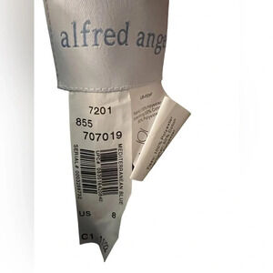 Stunning Alfred Angelo one-shoulder dress in a rich royal blue satin finish. Flattering draped bodice with pleated detailing and a tailored silhouette. Perfect for weddings, cocktail parties, or any special occasion.