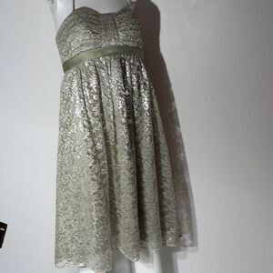 Alfred Angelo lace dress.Celadon size 4. . the color is a silvery pale green. tea length. great for any formal occasion. can be worn with or without the neck strap.#romantic