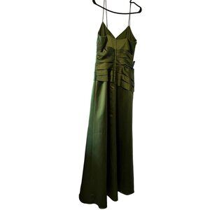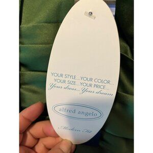 Alfred Angelo woman’s spaghetti strap forest green gown prom wedding special occasion maxi dress size 10. Zips in back. Has rushing on top part of dress front and back. Full skirt. Pit to pit measures approximately 16.5”. From top of dress to hem measures approximately 56”. Waist measures approximately 15” side to side. NWT