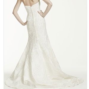 This is an Alfred Angelo wedding dress size 12 it runs small I'm normally a 10. I only wore it once to try on and now it's just taking up space in my closet. It's in perfect condition