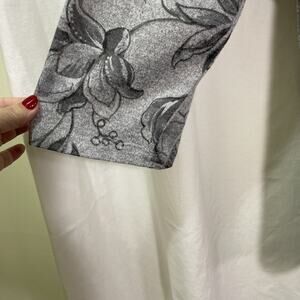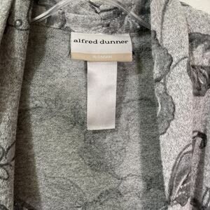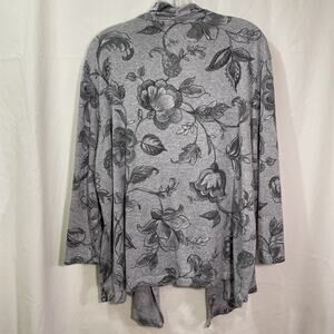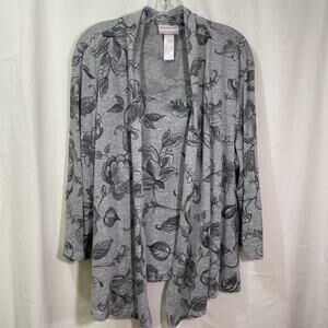 The Alfred Dinner 2X one piece cardigan over connected tank in grays with silver accent is a stylish and versatile top for women. This blouse features a floral pattern, long sleeves, and a round neckline, making it suitable for casual wear. The silver character adds a touch of elegance to the outfit, while the plus size and stretchy material ensure a comfortable fit. Easy to care for, this basic style cardigan is a must-have in any wardrobe for women seeking a chic and trendy look.