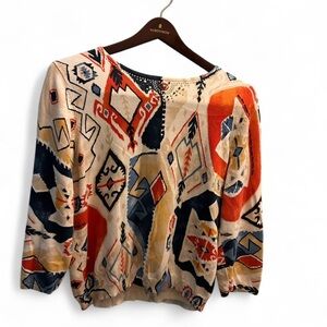 Alfred Dunner 100% Cotton Pattenered 3/4 Sleeve Sweater