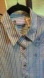 Material has decorative blue stitching down every 4th stripe. This has pulled in few places, mostly on right sleeve (pictured). You decide whether to cut off the flaws or not.