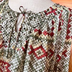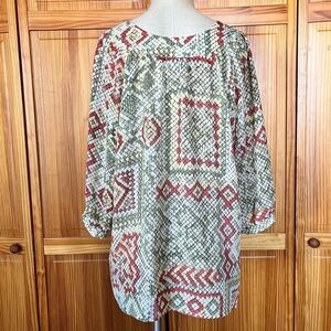 Alfred Dunner 18W Abstract Geometric Long Sleeve Blouse Front Tie Boho