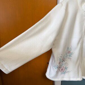 Alfred Dunner 2X Womens Fleece White Floral Embroidered Fleece Jacket Soft Full