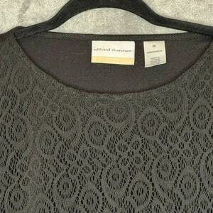 Alfred Dunner 2X Shirt Top Black Solid Short Sleeve Round Neck Knit Lace Overlay