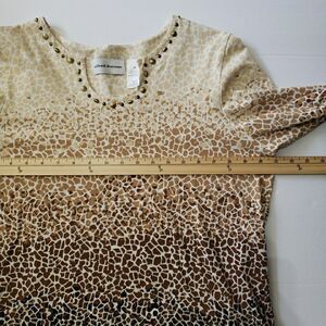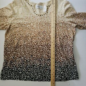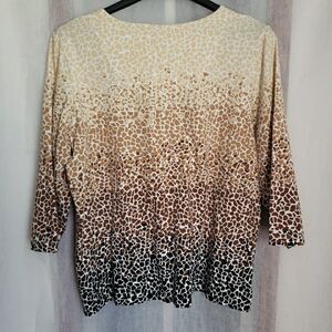 Alfred Dunner 3/4 Sleeve Animal Print Giraffe Blouse Cotton Stretch Women Size M