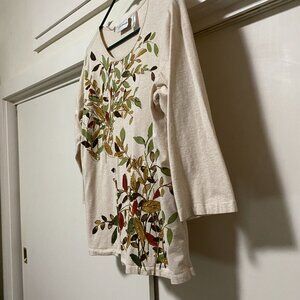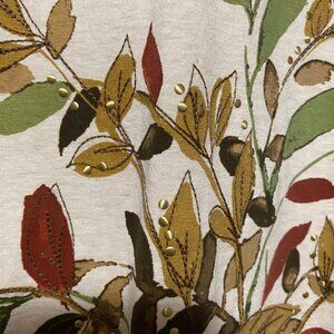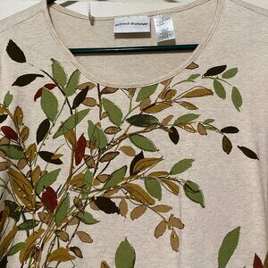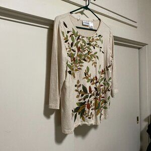 Alfred Dunner, 3/4 length sleeve beige tunic w/fall foliage array, size S