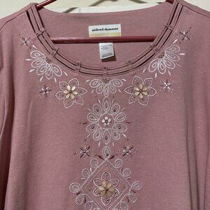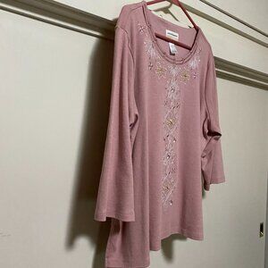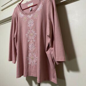 Alfred Dunner 3/4 length sleeve, mauve, embellished tunic, size 2X
