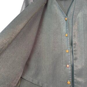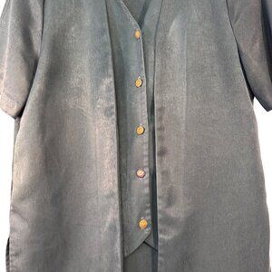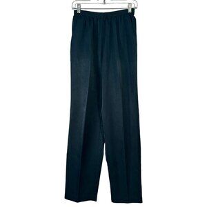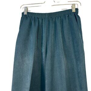 This Alfred Dunner ensemble showcases a classic, professional look with its elegant button-up top and elastic waist pants. The teal hue adds a sophisticated touch, making it suitable for formal and business settings. The set offers comfort and style, ensuring an impeccable appearance for work or professional gatherings.