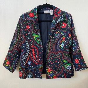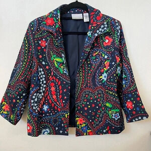 Alfred Dunner 8P Blazer Open Front Pleated 3/4 Sleeve Jacket Floral Colorful MOB