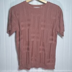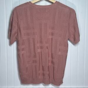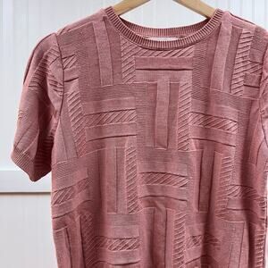 Alfred Dunner 90s Vintage Pink Geometric Textured Knit Short Sleeve Sweater Top
