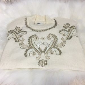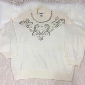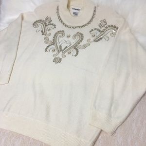Alfred Dunner 90s Vintage Sweater Cream Beaded Sequins Iridescent Size Large