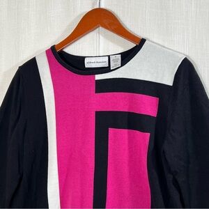 Alfred Dunner Abstract Color Block Pink Black White Retro Knit Sweater Sz S