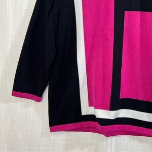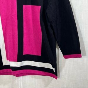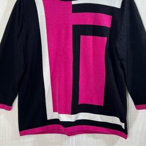 Alfred Dunner Abstract Color Block Pink Black White Retro Knit Sweater