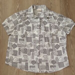 Alfred Dunner Abstract Print Blouse - Gray and White