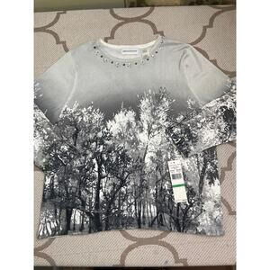 Alfred Dunner Alpine Lodge 3/4 sleeve black/ gray/ white sweater, size large, MSRP $66