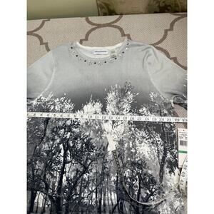 Alfred Dunner Alpine Lodge 3/4 sleeve gray/ white sweater, size large, MSRP $66