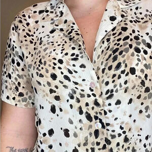 Alfred Dunner Animal Print Short Sleeve Button Down Top