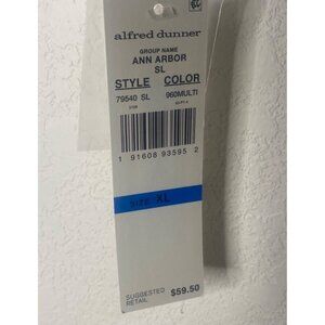 Alfred Dunner Ann Arbor Top Womens Size XL Blue Striped Tunic Lace 3/4 Sleeves L