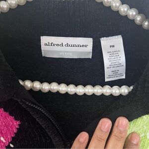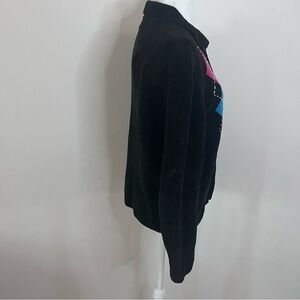 Alfred Dunner Black Argyle Print Chenille Collared Zip Cardigan |Size MP|