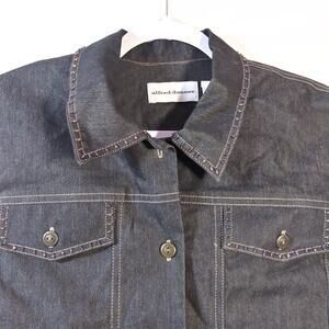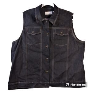 Alfred Dunner Black Denim Embroidered Embellished Button Front Vest Size 18
