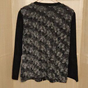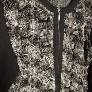 Alfred Dunner Black Grey Faux Fur Full Zip Knit Top 16