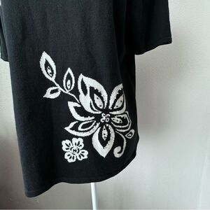 Alfred Dunner Black Top Butterfly Floral Beaded Short Sleeve Shirt SZ S