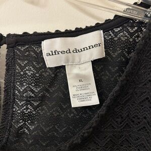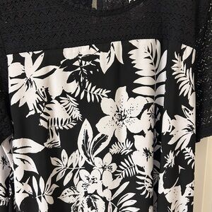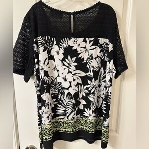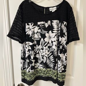 Alfred Dunner Black and White Floral Blouse with Green Trim