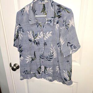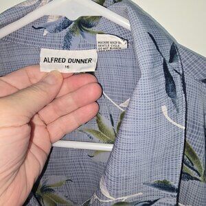 Alfred Dunner Blouse Blue Gray Leaves Top Size 16 Elastic Hem