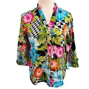 Alfred Dunner Blouse Buttoned Down Multi Color Floral size 10