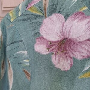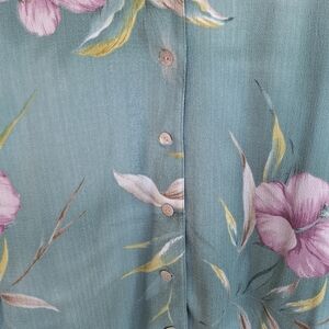 Alfred Dunner Blouse Plus Sz18 Sea Grn Short Sleeve Floral Button Front Washable Polyester Very Good Condition