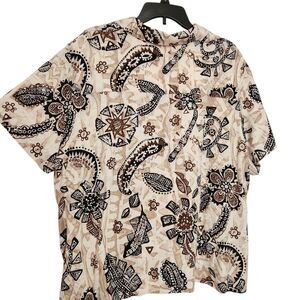 Alfred Dunner Blouse Size 22W Button Front Linen Blend Top Short Sleeve