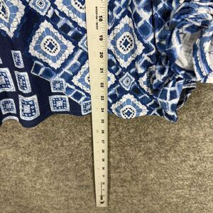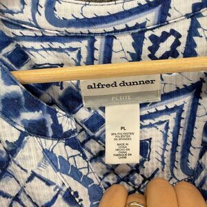 Alfred Dunner Blouse Women PL Petite Blue Geometric V-Neck Long Sleeve Button