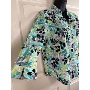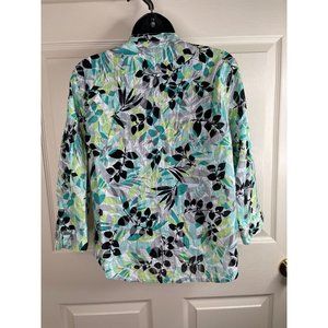 Alfred Dunner Blouse Women Size 12P Petite 12 Green Blue Semi Sheer Button Top