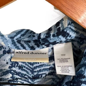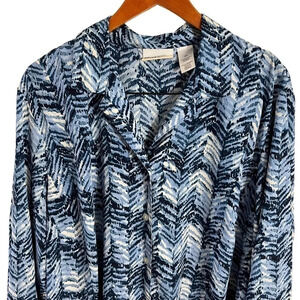Alfred Dunner Blue Chevron Striped Button Up Blouse Plus Size 18W Long Sleeves