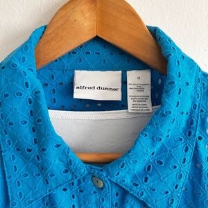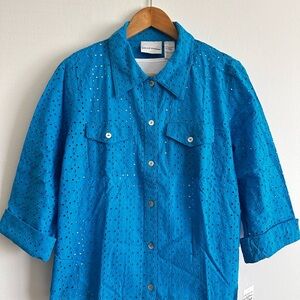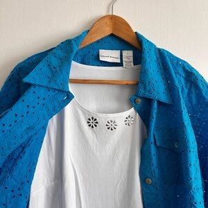 Alfred Dunner Blue Eyelet Shirt with White Embellished Top